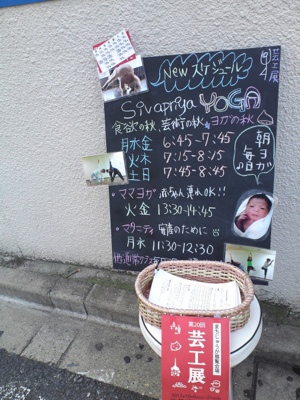 月木は朝ヨガ、金曜日はママヨガもやってます。芸工展の期間中、ご予約の方は体験500円で受けられます。